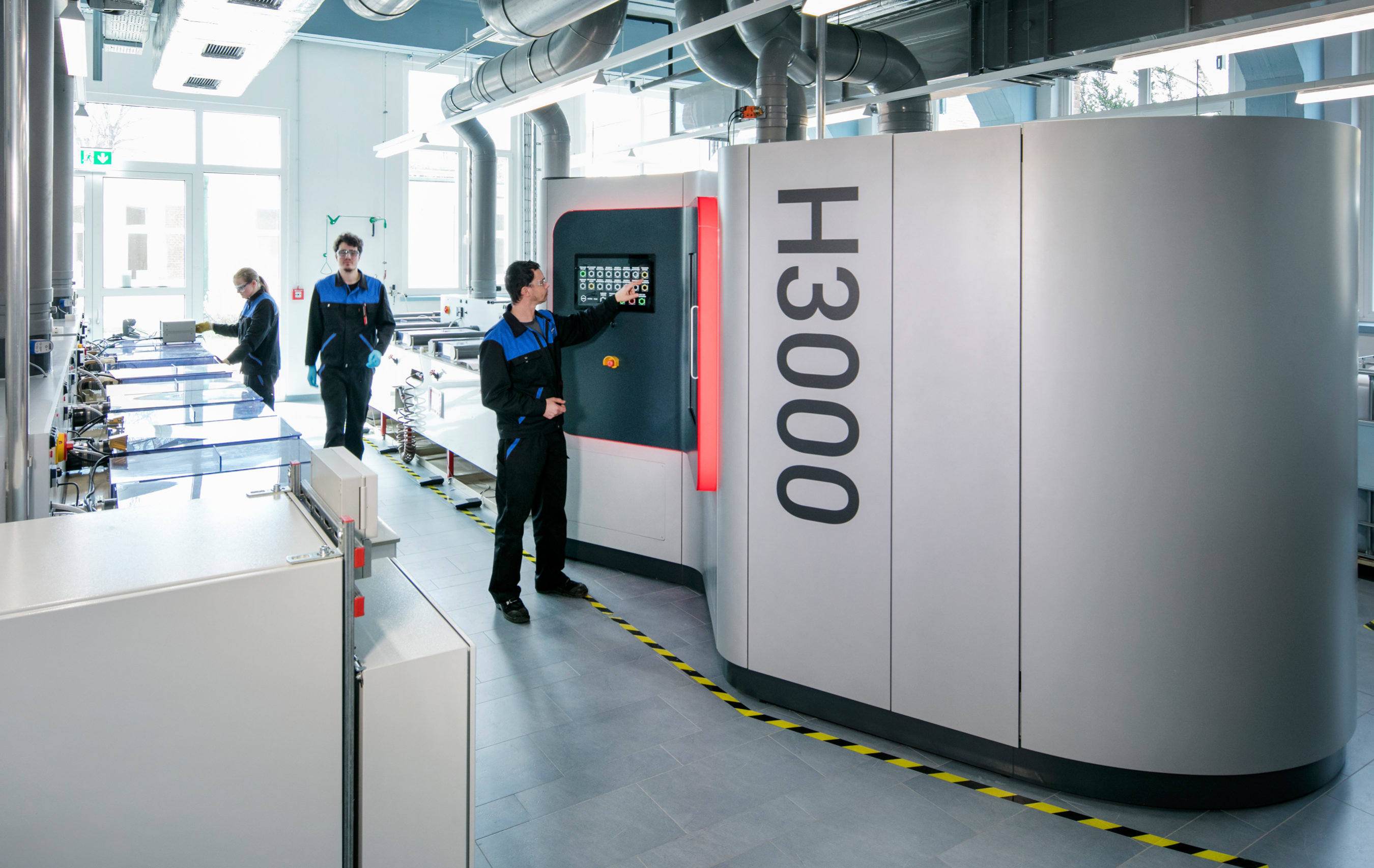 1) The H3000 is ideal for part sizes up to 300 x 300 x 150mm and can handle the part feed from up to three AM-printers