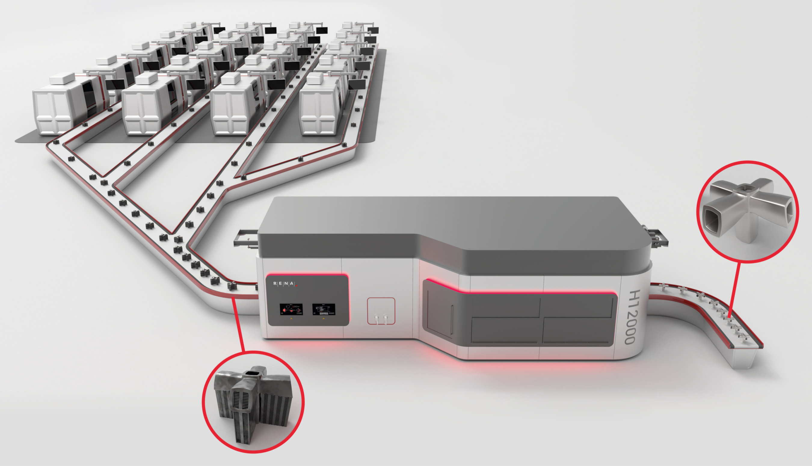 4) The H12000 is designed to integrate seamlessly into larger industrial additive manufacturing processes and can handle the part feed from up to 25 AM-printers